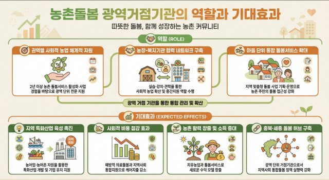 특히 농촌지역 고령화와 돌봄 수요 증가에 대응하여 복지·보건·농업을 연계한 통합 돌봄 모델을 확산하고, 지역 공동체 중심의 돌봄 실천 기반을 강화할 계획이다.