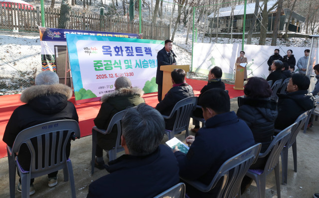 청주시는 5일 상당구 미원면 옥화자연휴양림(운암옥화길 140)에 산림레포츠 시설인 ‘옥화 짚트랙’을 조성하고 준공식을 개최했다.