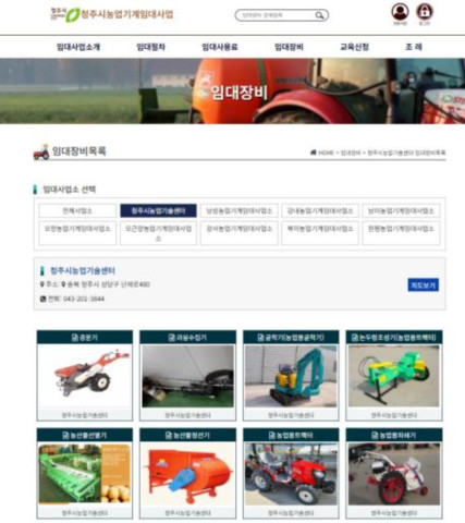 농기계 임대사업은 청주시에서 농업 활동을 하는 농업인에게 1~2일 이내 농업기계를 임대해 이용할 수 있도록 지원하는 사업이다.