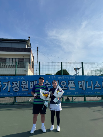 충북 괴산군청 테니스부가 지난 3월 20일부터 29일까지 전남 순천시 팔마시립테니스장에서 열린 ‘2026 순천 오픈 테니스대회’ 혼합복식 부문에서 우승과 준우승을 차지했다.