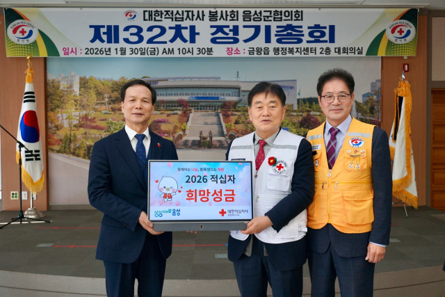 음성군(군수 조병옥)은 30일(금) 금왕읍행정복지센터에서 대한적십자사 충북지사(회장 장현봉)에 2026년도 적십자 희망성금을 전달했다.